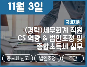 | 과정명 | (경력)세무회계 직원 CS 역량 & 법인조정 및 종합소득세 실무 1회차 [모집/진행] |